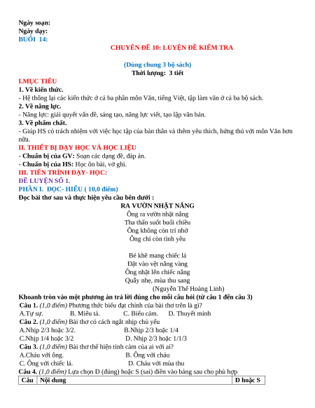 Giáo án Chuyên đề 10. Luyện đề kiểm tra