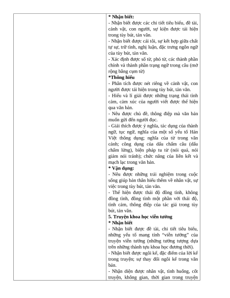 văn lớp 7? (Mức độ đánh giá: nhận biết, trong văn bản. thông hiểu, vận dụng)