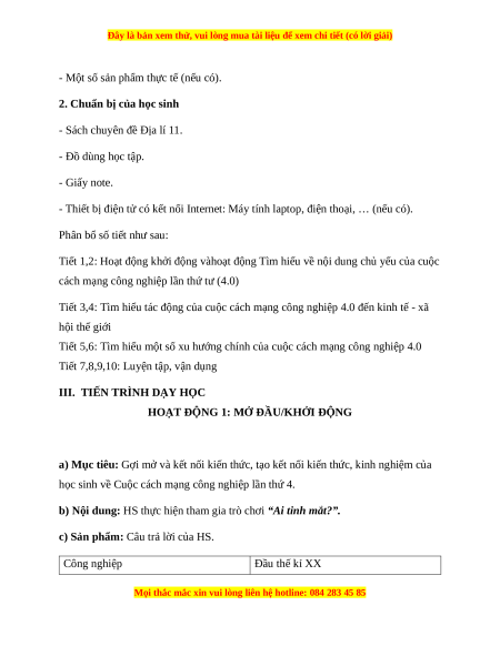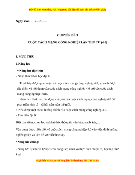 Giáo án chuyên đề 3: Cuộc cách mạng công nghiệp lần thứ 4 Địa lí 11 Cánh diều