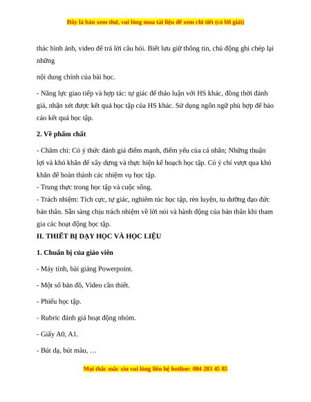 II. THIẾT BỊ DẠY HỌC VÀ HỌC LIỆU