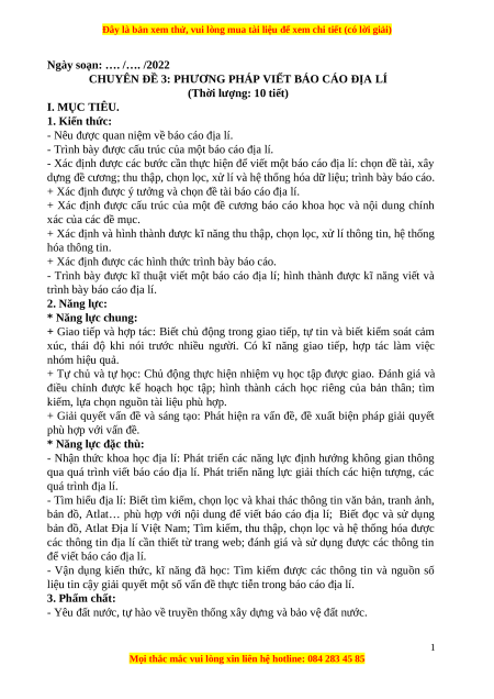 CHUYÊN ĐỀ 3: PHƯƠNG PHÁP VIẾT BÁO CÁO ĐỊA LÍ
