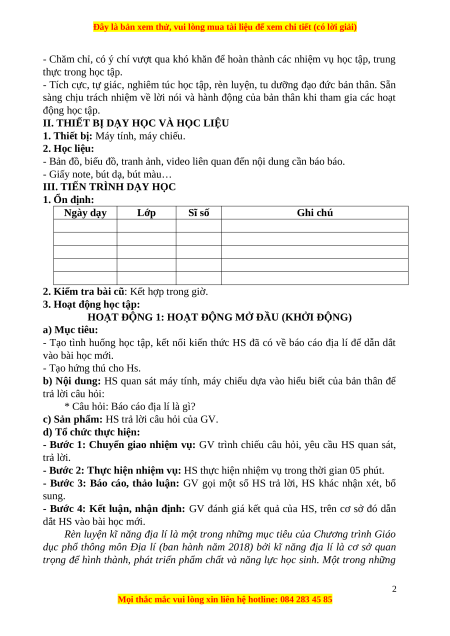 II. THIẾT BỊ DẠY HỌC VÀ HỌC LIỆU