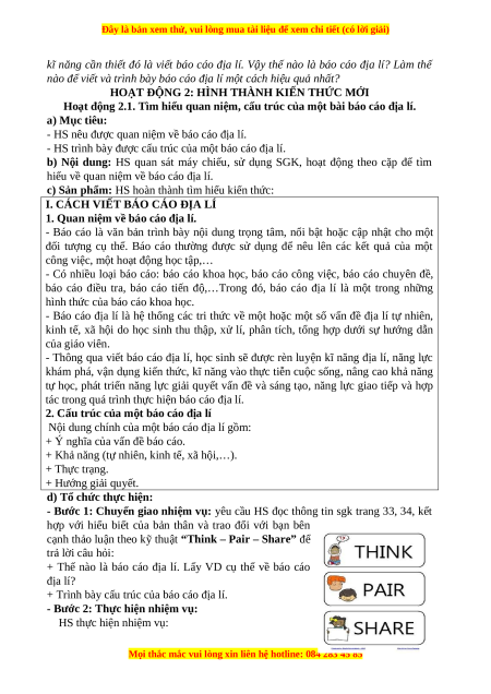 I. CÁCH VIẾT BÁO CÁO ĐỊA LÍ