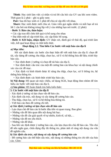 Hoạt động 2.2. Tìm hiểu Các bước viết một báo cáo địa lí a) Mục tiêu: