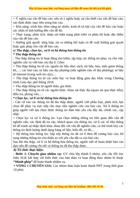 tài, xây dựng đề cương; thu thập, chọn lọc, xử lí và hệ thống hóa dữ liệu; trình bày báo cáo.