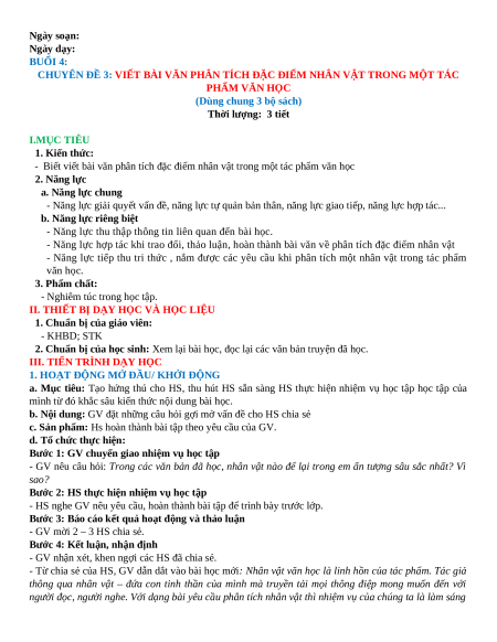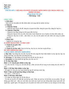 Giáo án Chuyên đề 3. Viết bài văn phân tích đặc điểm nhân vật trong một tác phẩm văn học