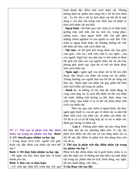 NV 2 : Thế nào là phân tích đặc điểm thể hiện đầy đủ các phương diện trên. Vì vậy khi