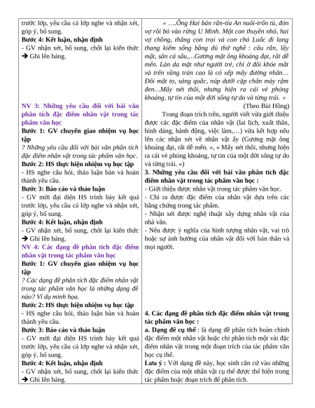 - Năng lực hợp tác khi trao đổi, thảo luận, hoàn thành bài văn về phân tích đặc điểm nhân vật