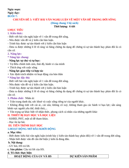 Giáo án Chuyên đề 5. Viết bài văn nghị luận về một vấn đề trong đời sống