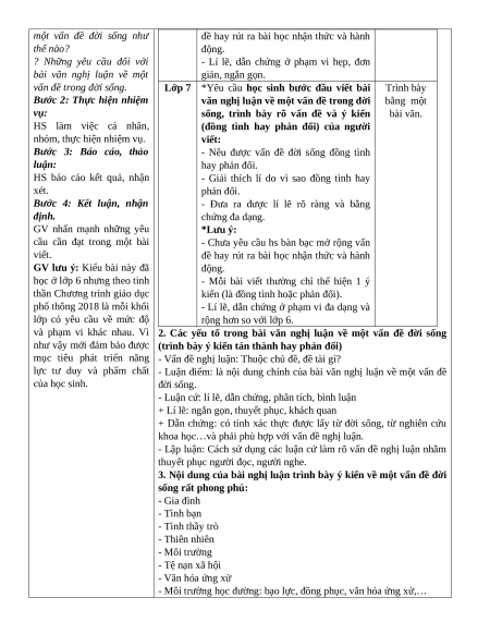 Bước 1: Chuyển giao Phân biệt sự khác nhau giữa văn nghị luận 6 và 7 nhiệm vụ: Khối Mức độ phạm vi