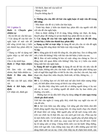 - Nêu được vấn đề và ý kiến cần bàn luận. NV 2 (phân 5)