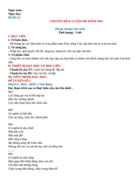 Giáo án Chuyên đề 8. Luyện đề kiểm tra