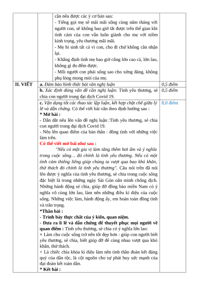 b. Xác định đúng vấn đề cần nghị luận: Tình yêu thương, sẻ 0,5 điểm