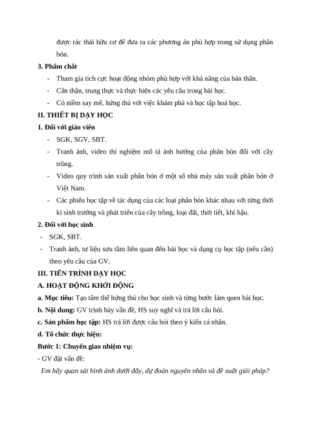 - Vận dụng kiến thức, kĩ năng đã học: Hiểu và vận dụng sử dụng phân bón