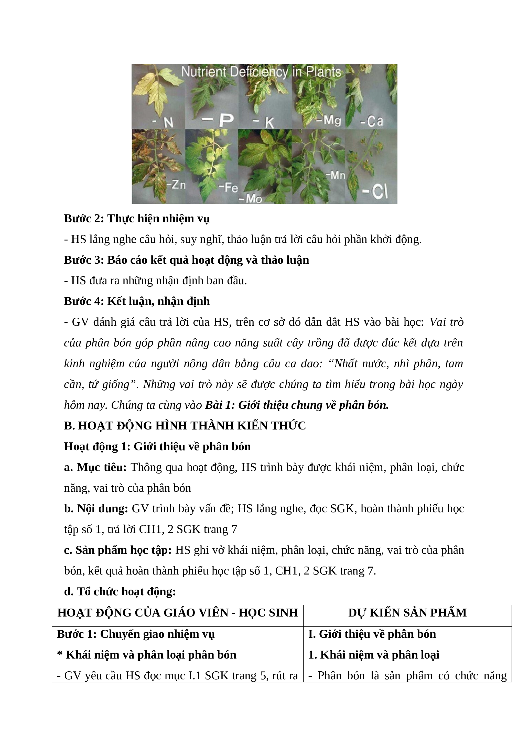 hôm nay. Chúng ta cùng vào Bài 1: Giới thiệu chung về phân bón.