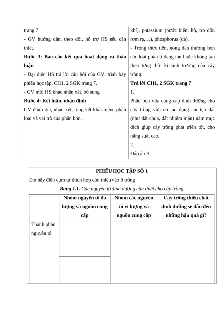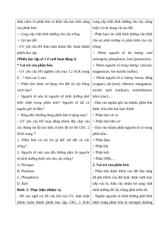 nhóm hoàn thành phiếu học tập, CH1, 2 SGK nhất trong phân bón là nitrogen (không