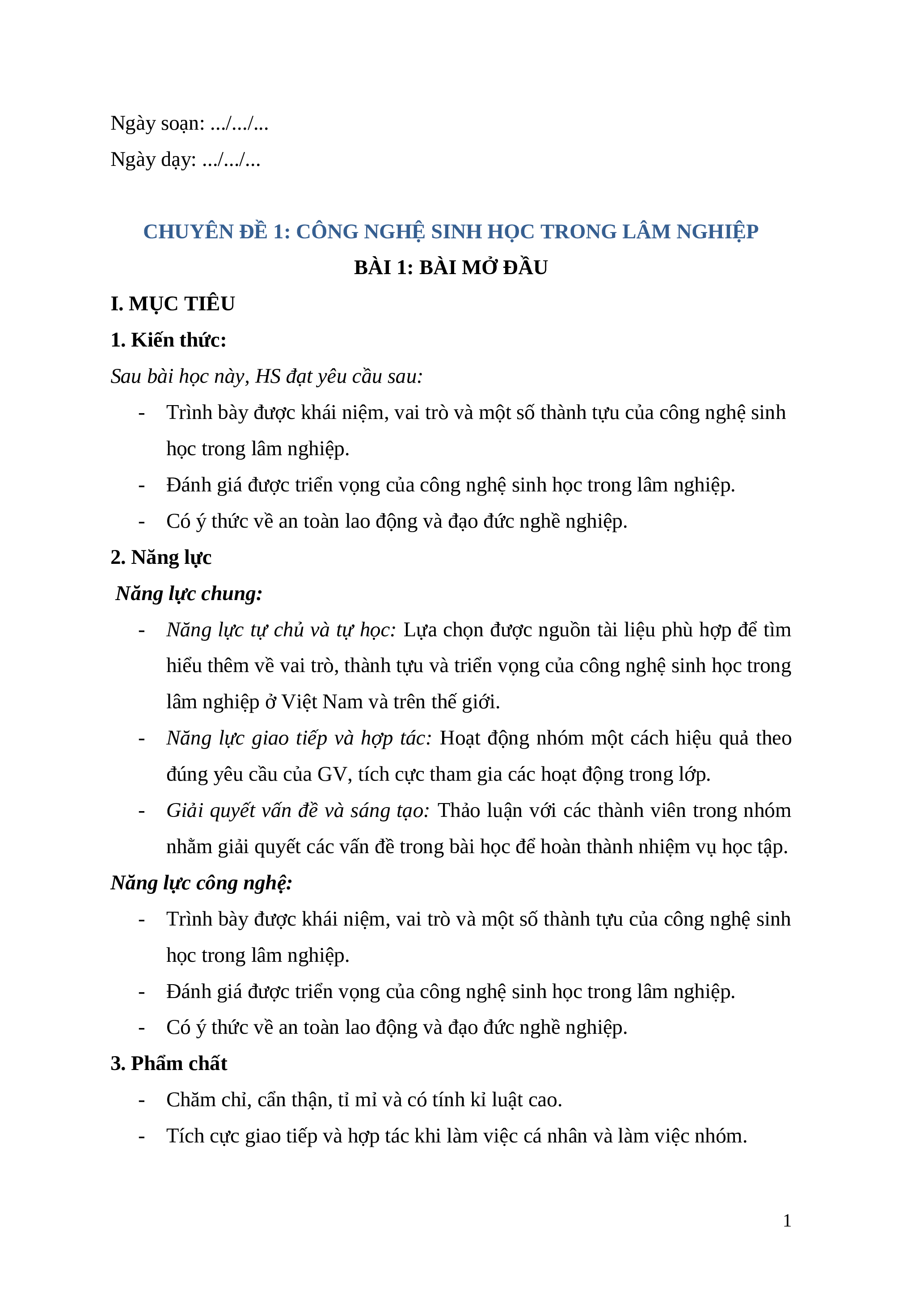 CHUYÊN ĐỀ 1: CÔNG NGHỆ SINH HỌC TRONG LÂM NGHIỆP