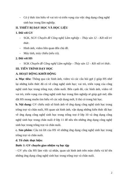 Bộ Giáo án chuyên đề Công nghệ Lâm nghiệp thủy sản 12 Kết nối tri thức đã cập nhật đủ Cả năm.
