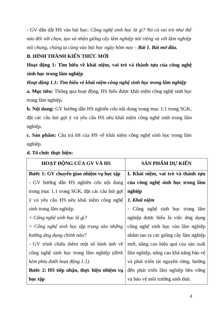 a. Mục tiêu: Thông qua hoạt động, HS hiểu được khái niệm công nghệ sinh học trong lâm nghiệp.
