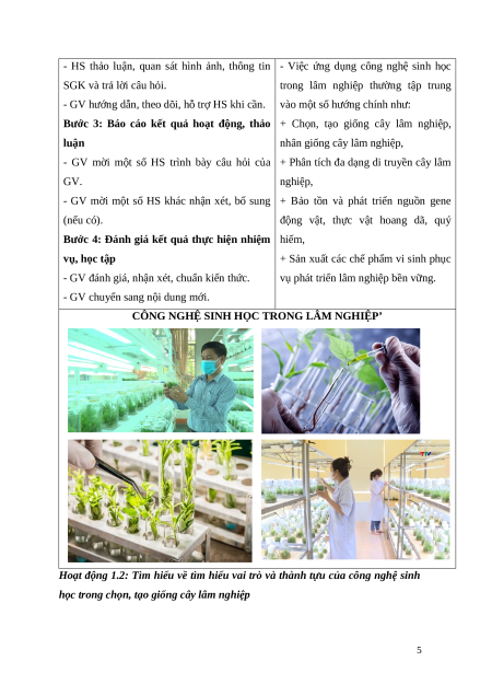 Hoạt động 1.1: Tìm hiểu về khái niệm công nghệ sinh học trong lâm nghiệp