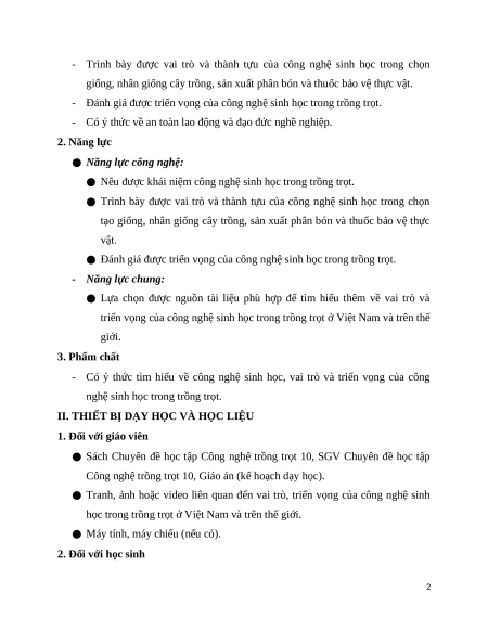 - Đánh giá được triển vọng của công nghệ sinh học trong trồng trọt.