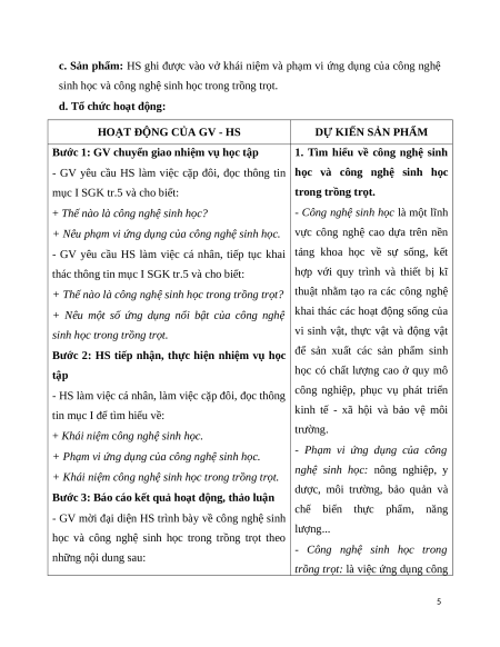 nghệ sinh học trong trồng trọt là gì, chúng được ứng dụng trong những lĩnh vực nào của đời sống. b. Nội dung: