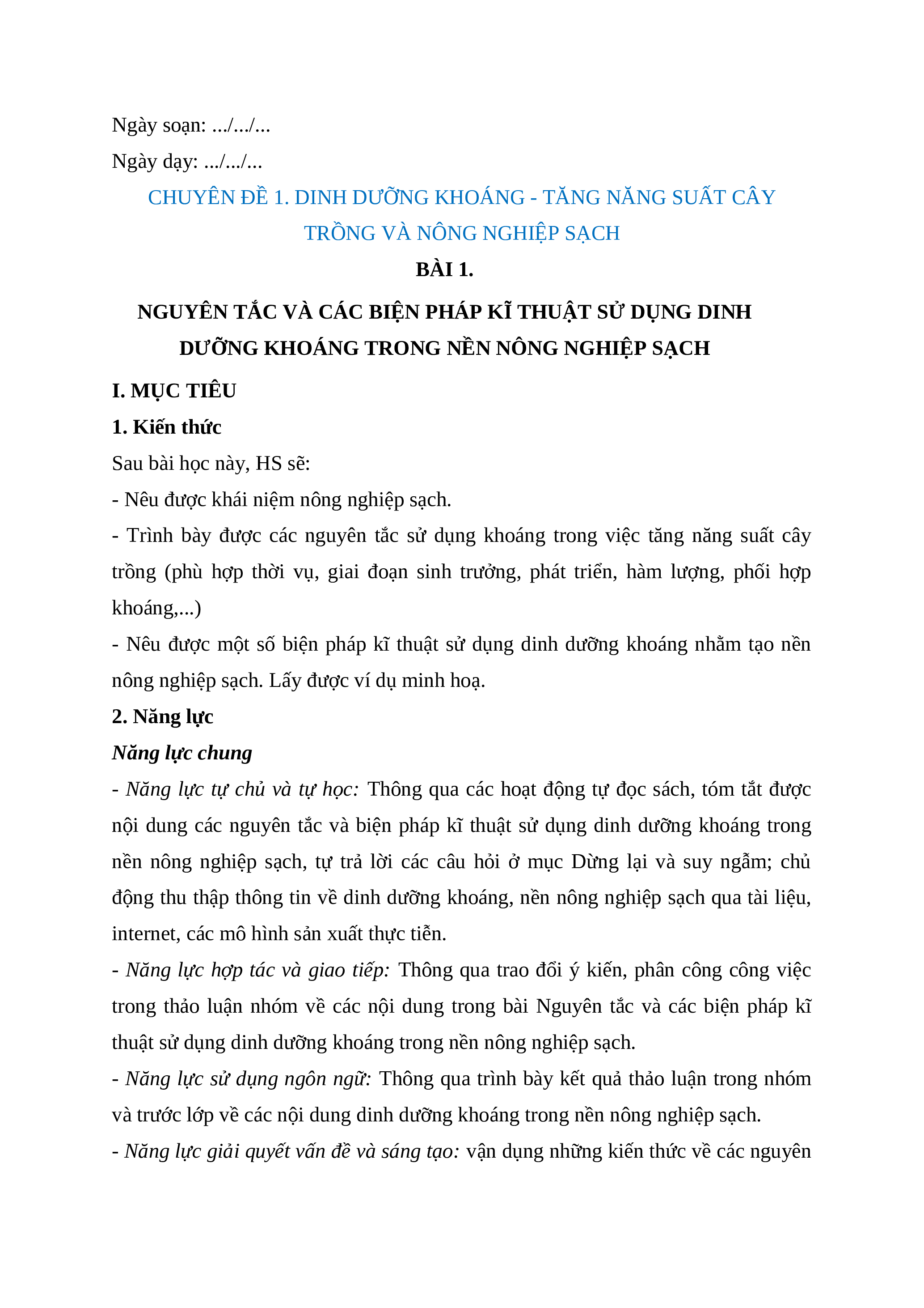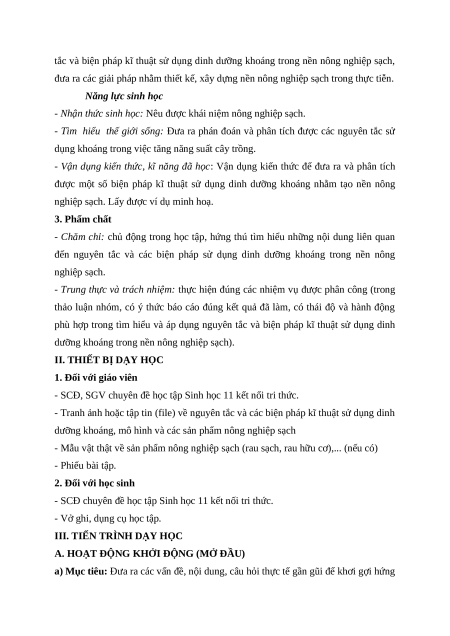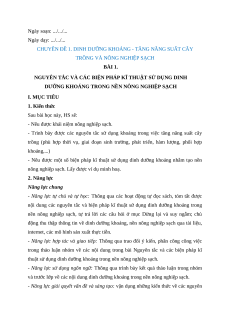 Giáo án chuyên đề Bài 1: Nguyên tắc và các biện pháp kĩ thuật sử dụng dinh dưỡng khoáng trong nền nông nghiệp sạch 11 Kết nối tri thức