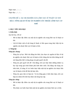 CHUYÊN ĐỀ 1: DỰ ÁN NGHIÊN CỨU LĨNH VỰC KĨ THUẬT CƠ KHÍ