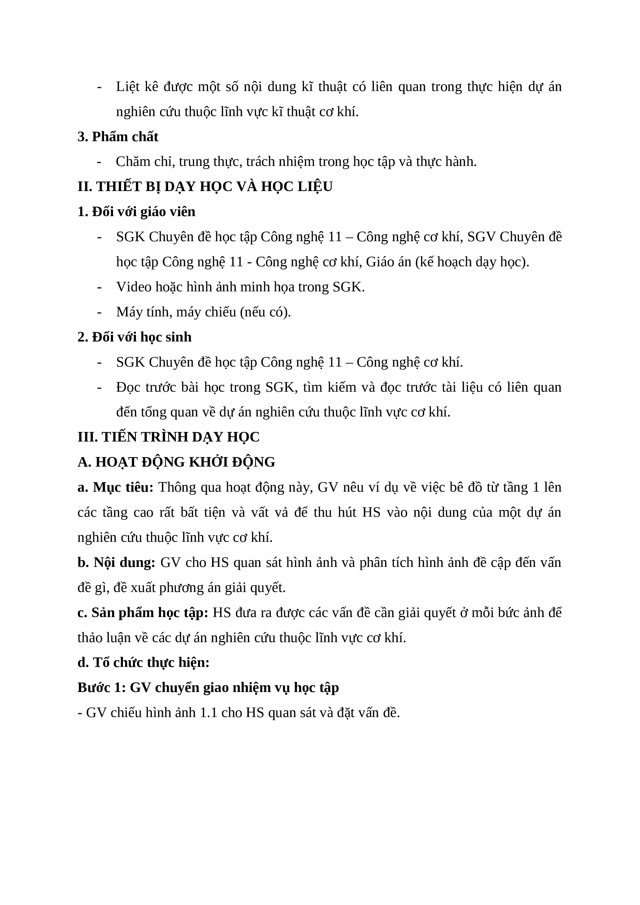 học tập Công nghệ 11 - Công nghệ cơ khí, Giáo án (kế hoạch dạy học).