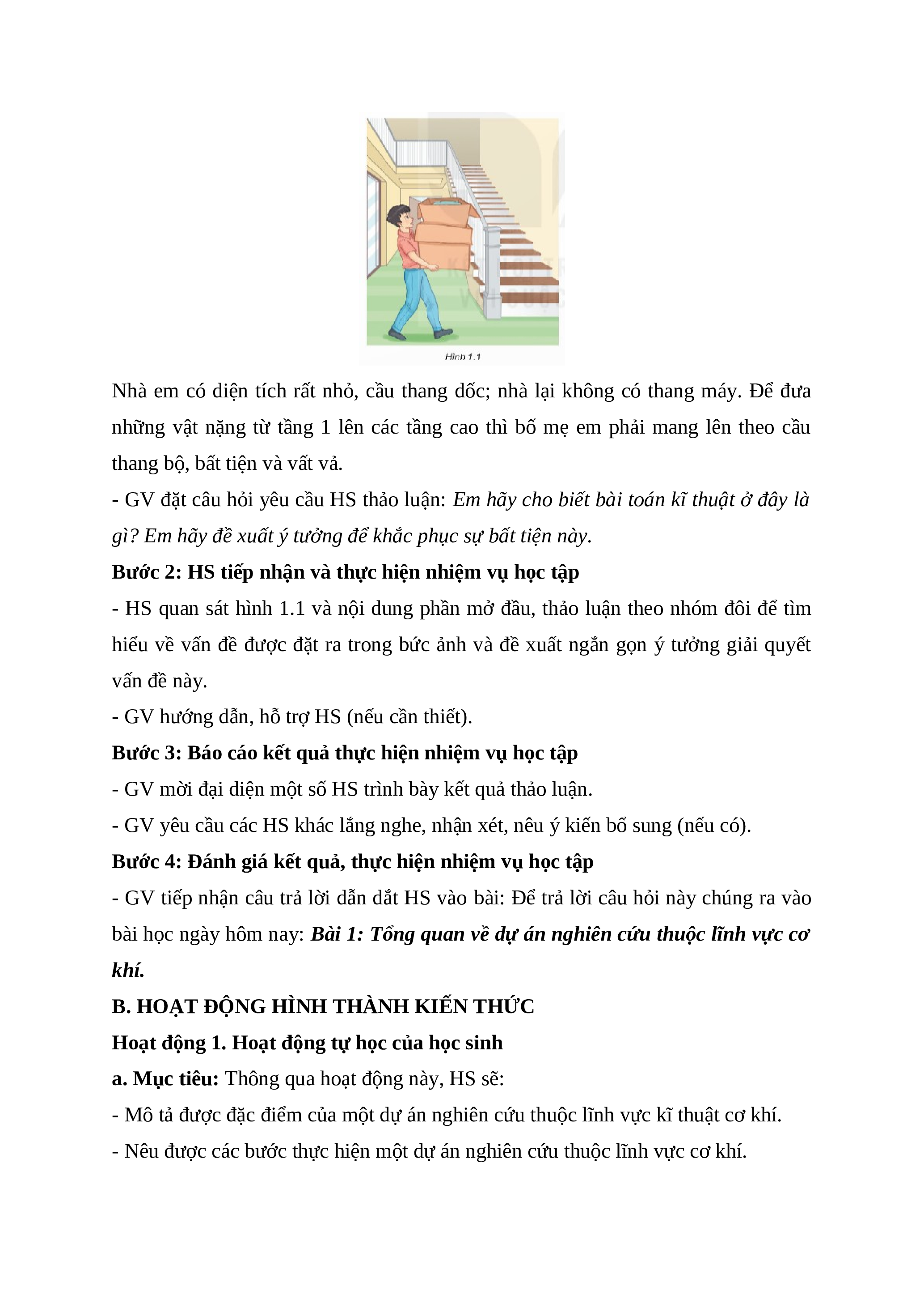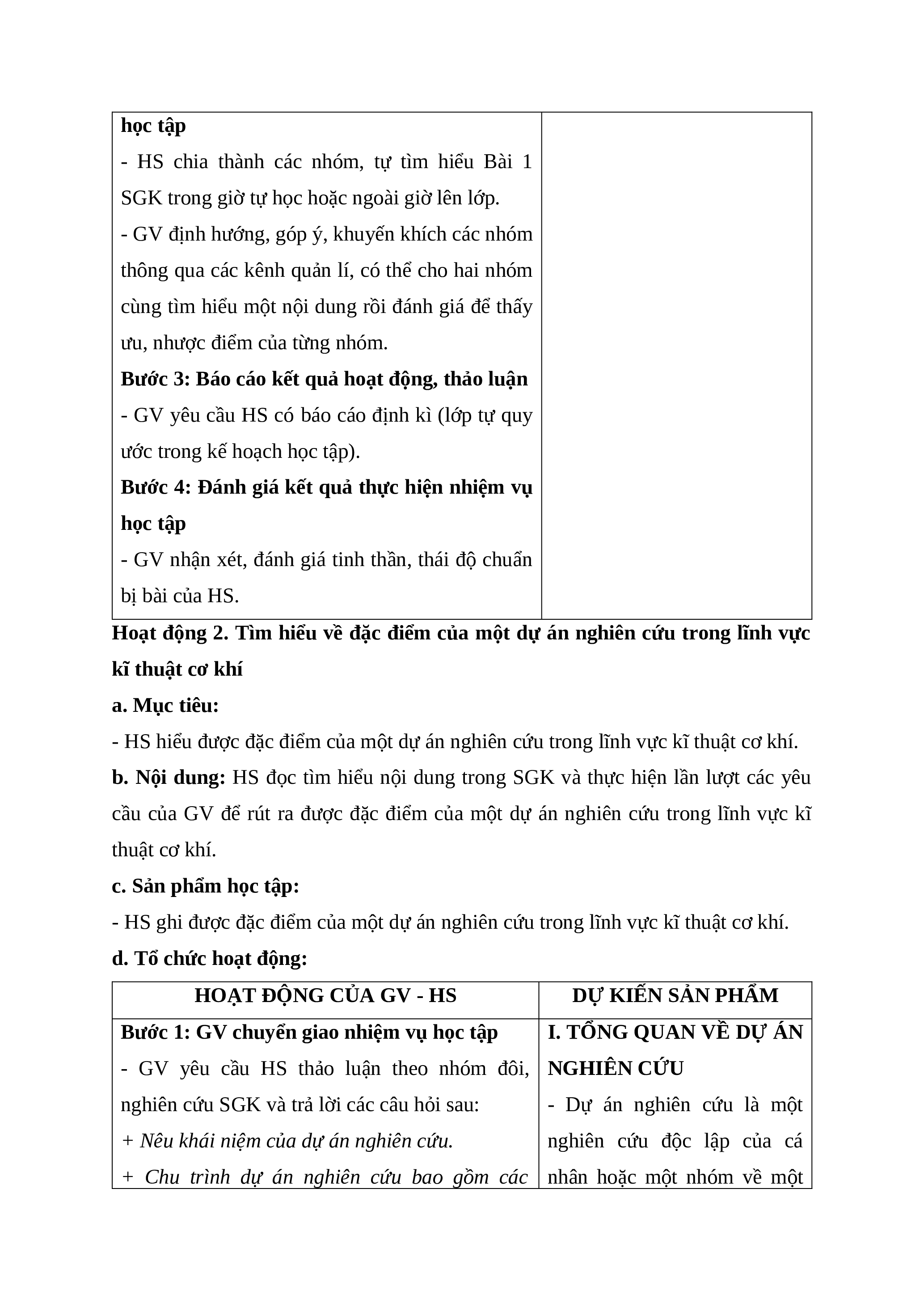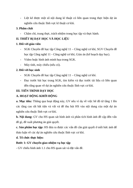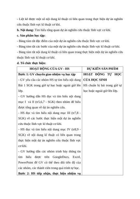 - Nêu được các bước thực hiện một dự án nghiên cứu thuộc lĩnh vực cơ khí.