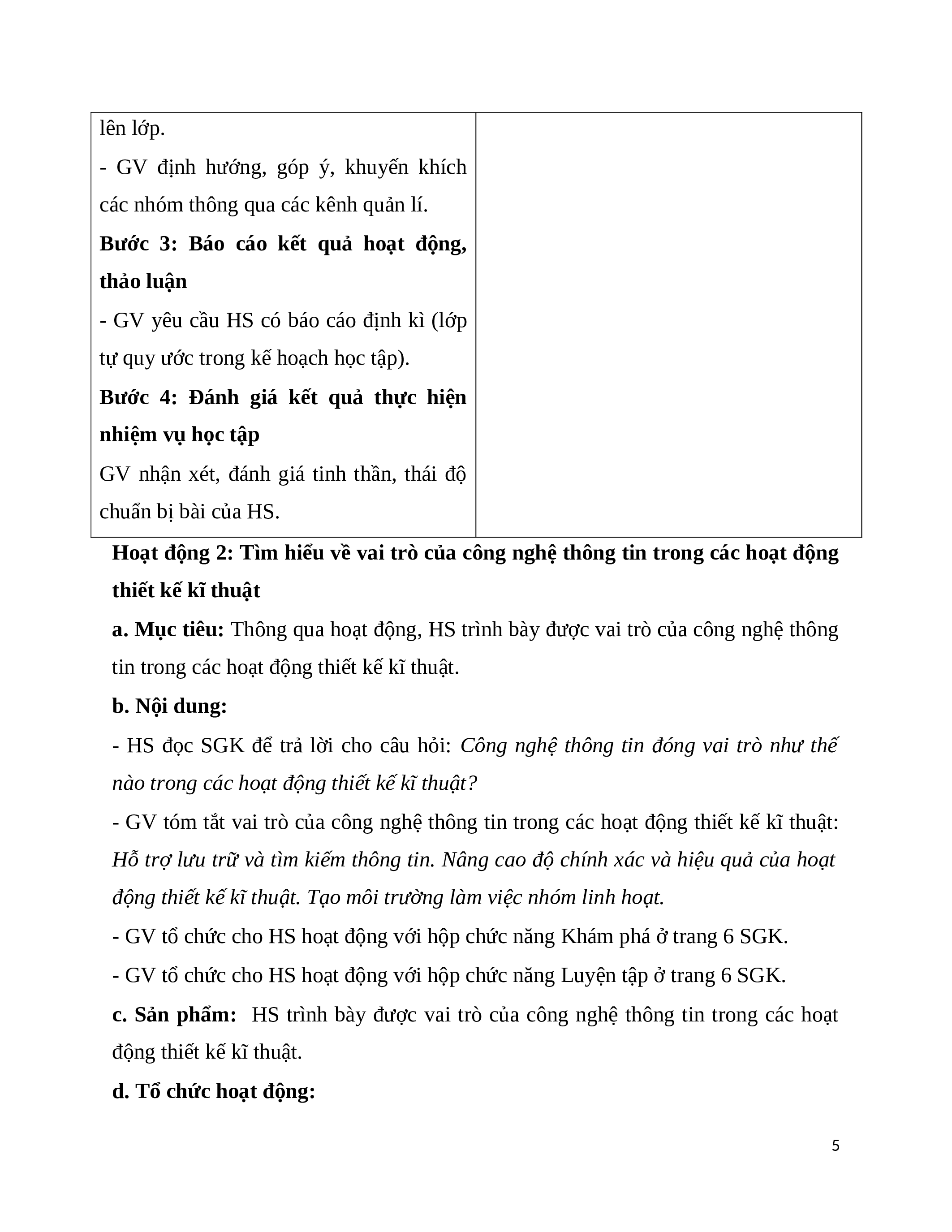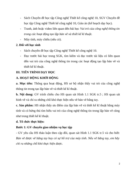 - Nắm được vai trò của công nghệ thông tin trong các hoạt động lập bản vẽ kĩ thuật. b. Nội dung: