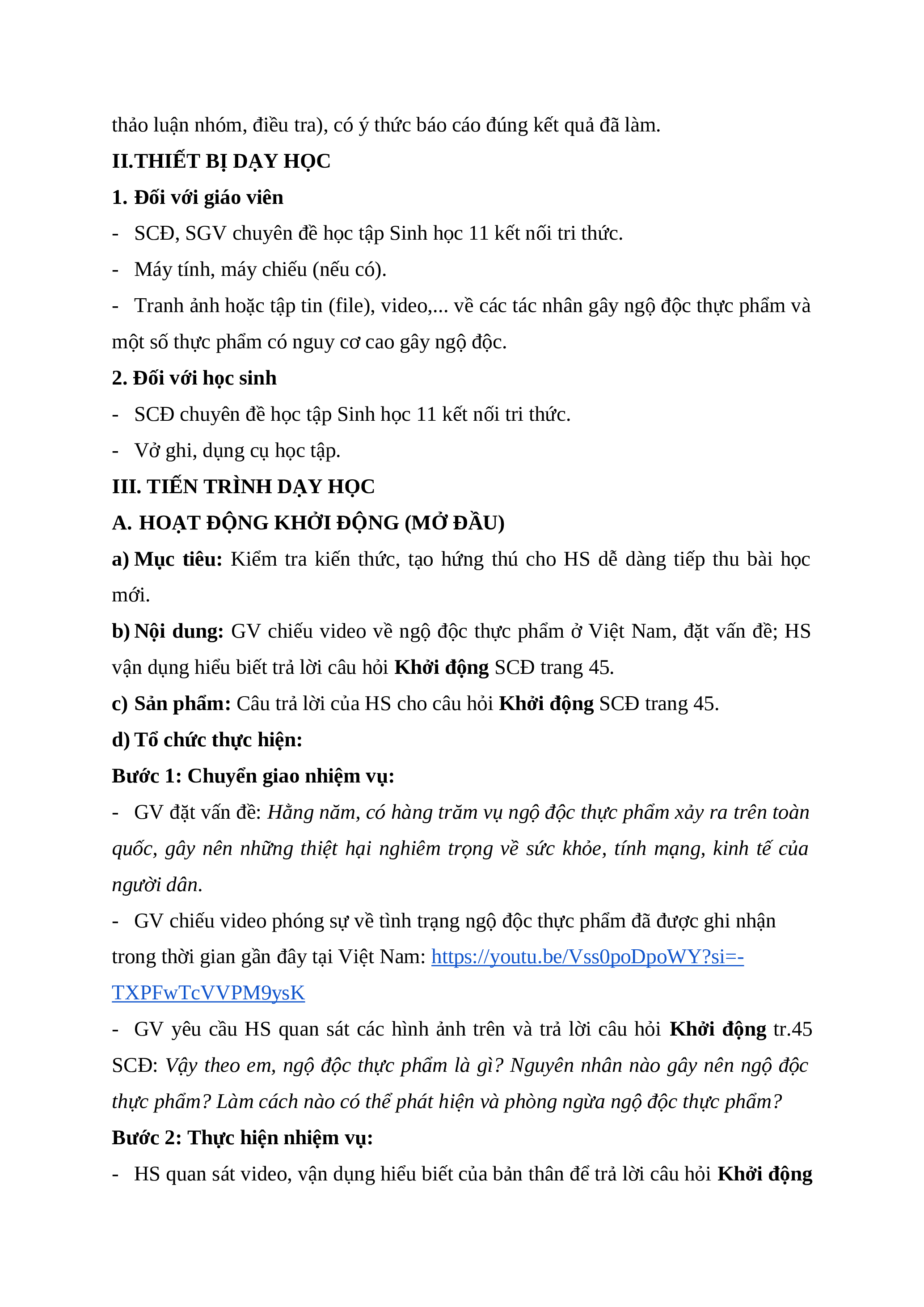 b) Nội dung: GV chiếu video về ngộ độc thực phẩm ở Việt Nam, đặt vấn đề; HS