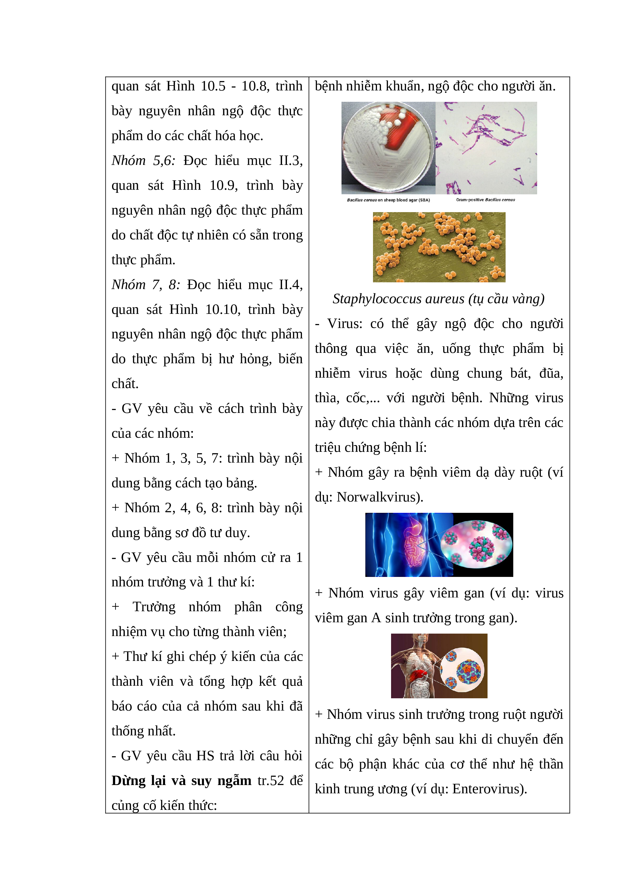 Nhóm 3, 4: Đọc hiểu mục II.2, aureus,... có trong thực phẩm có thể gây