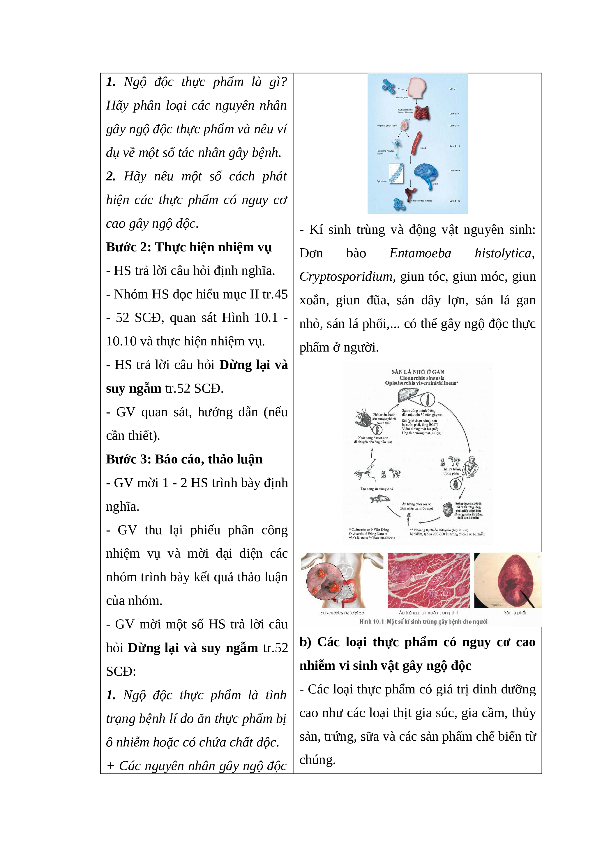 hiểu mục II tr.45 - 52 SCĐ, thực 1. Ngộ độc thực phẩm do nhiễm vi sinh hiện nhiệm vụ sau: vật