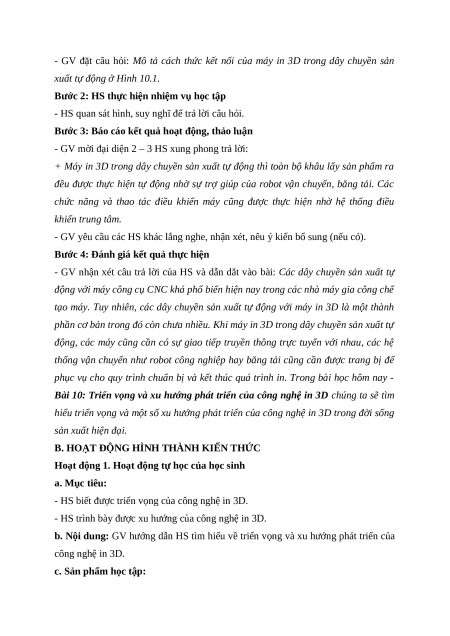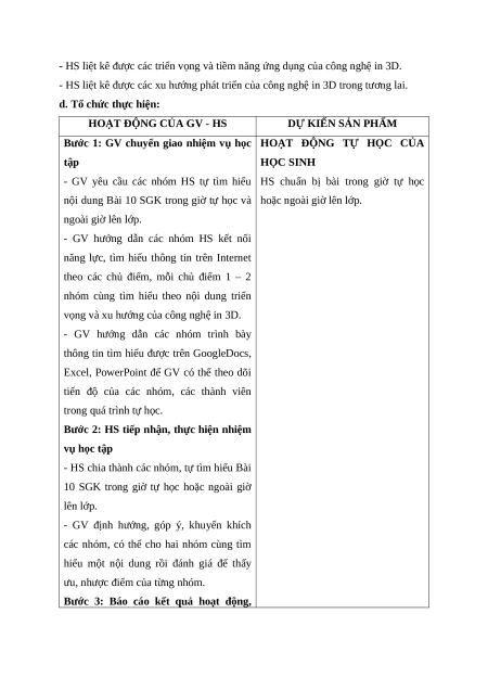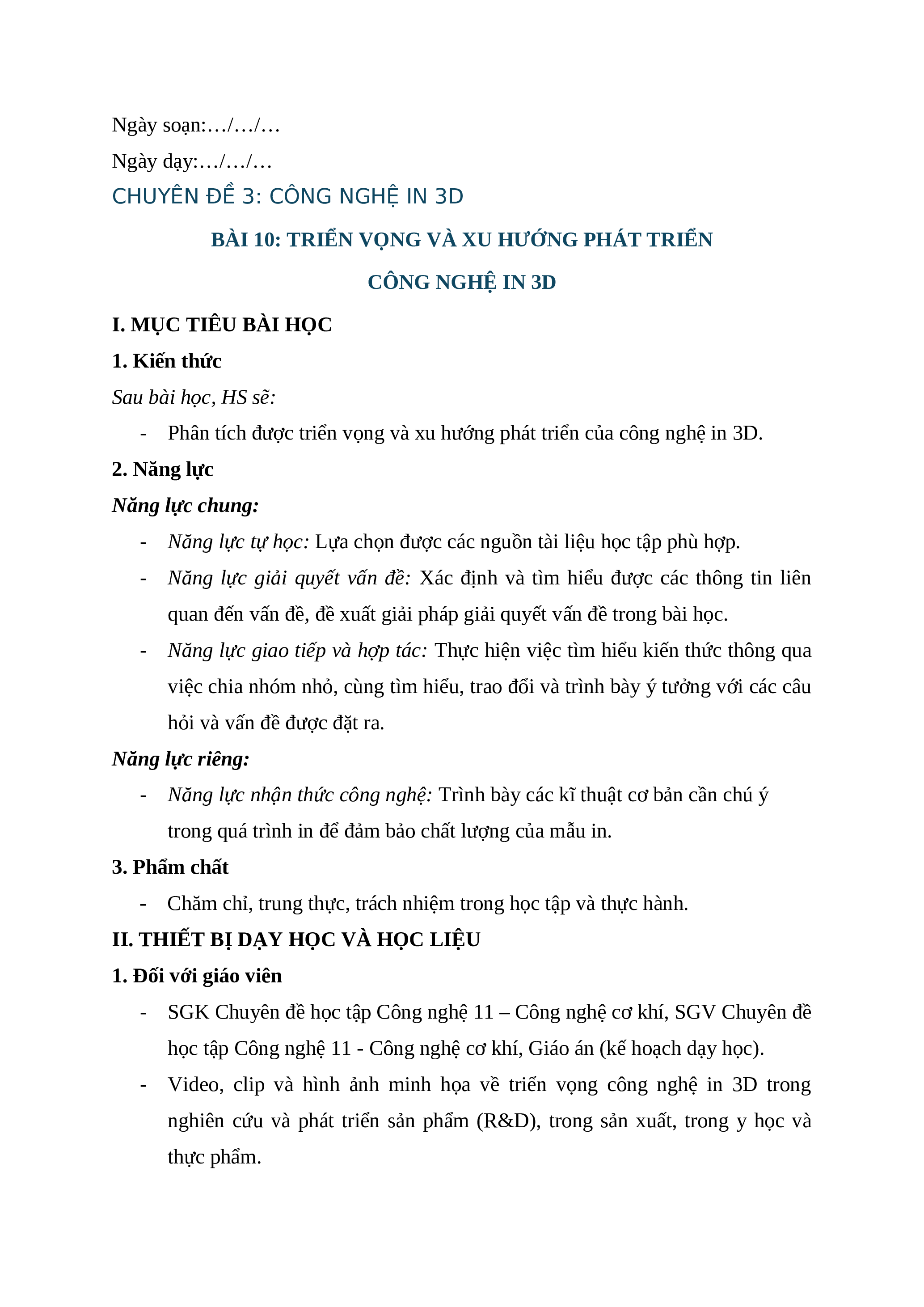 - Phân tích được triển vọng và xu hướng phát triển của công nghệ in 3D. 2. Năng lực