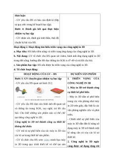 Giáo án chuyên đề Bài 10: Triển vọng và xu hướng phát triển CN in 3D Công nghệ cơ khí 11 Kết nối tri thức