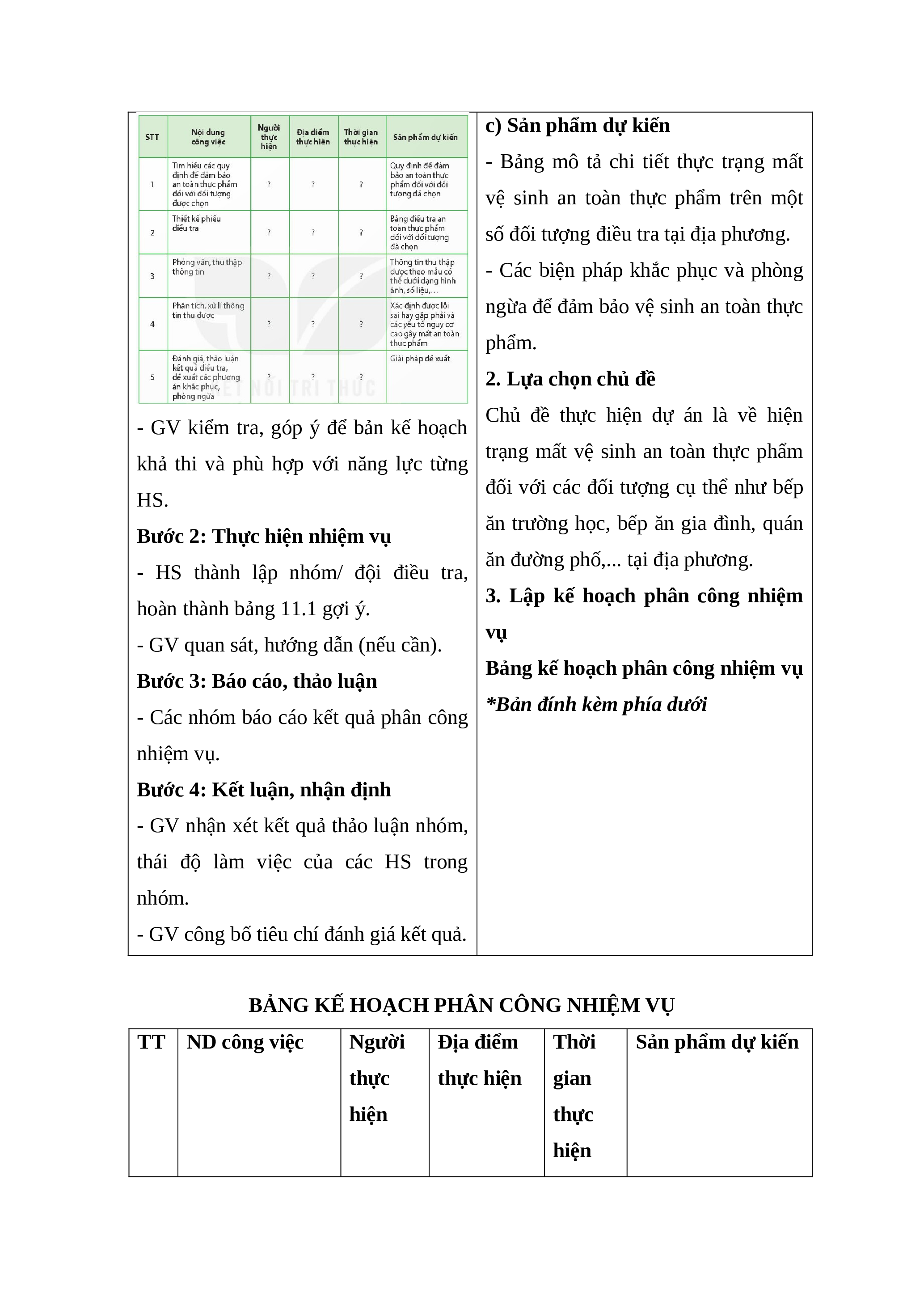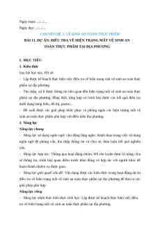 Giáo án chuyên đề Bài 11: Dự án Điều tra về hiện trạng mất vệ sinh an toàn thực phẩm tại địa phương Sinh học 11 Kết nối tri thức
