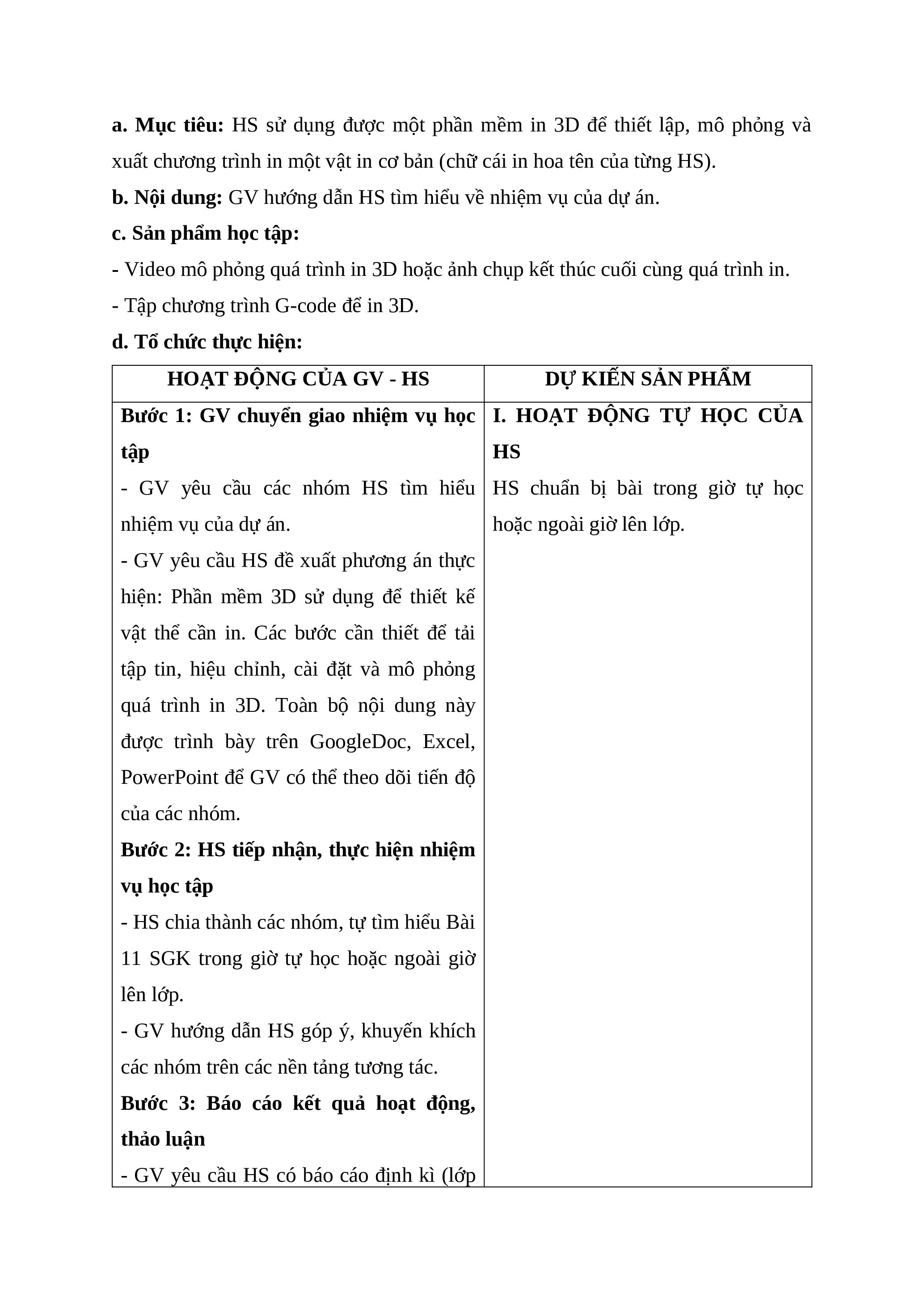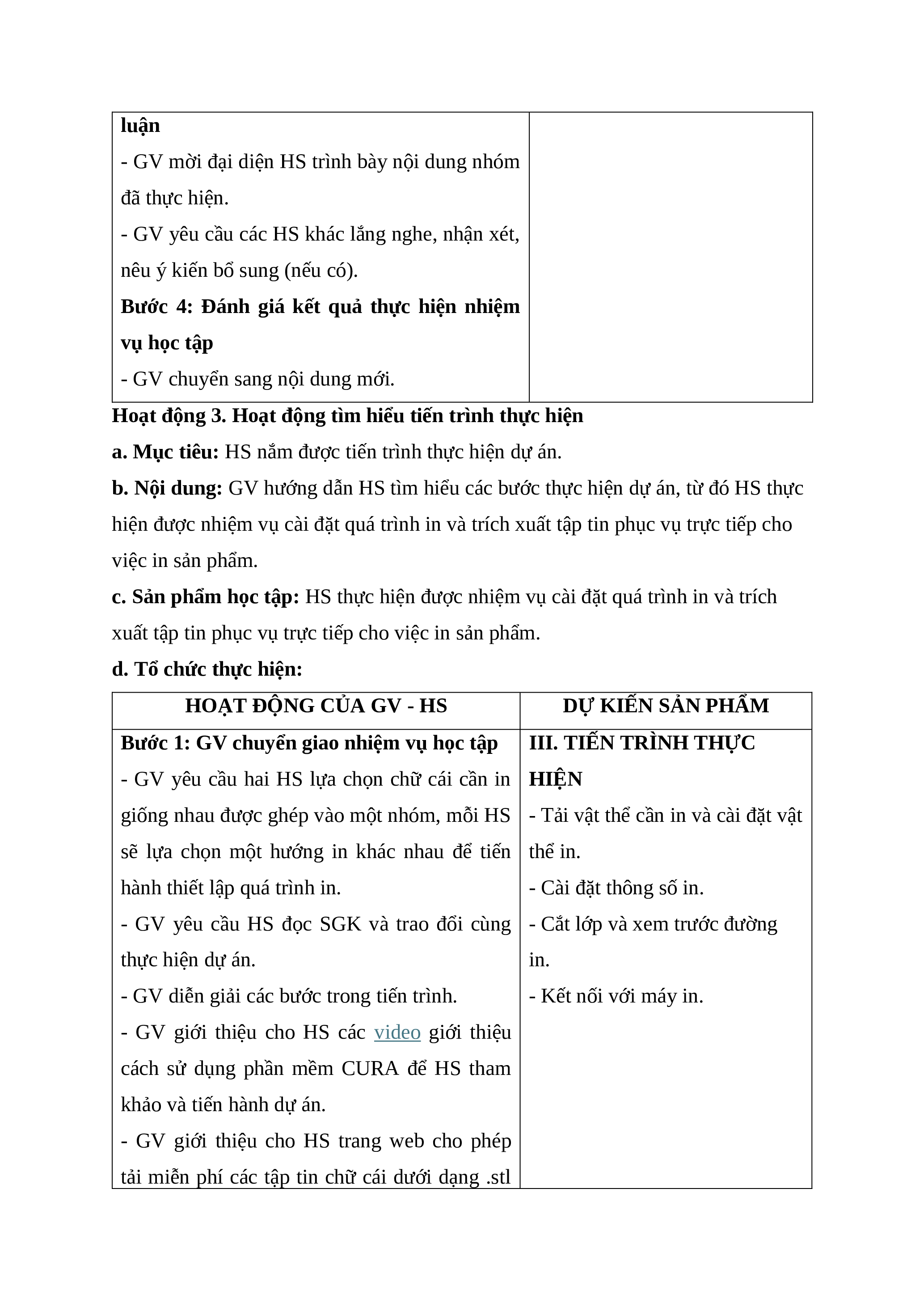quá trình thực hiện dự án, hỗ trợ HS (nếu cần có định dạng .stl của các chữ thiết). cái in hoa trên Internet.