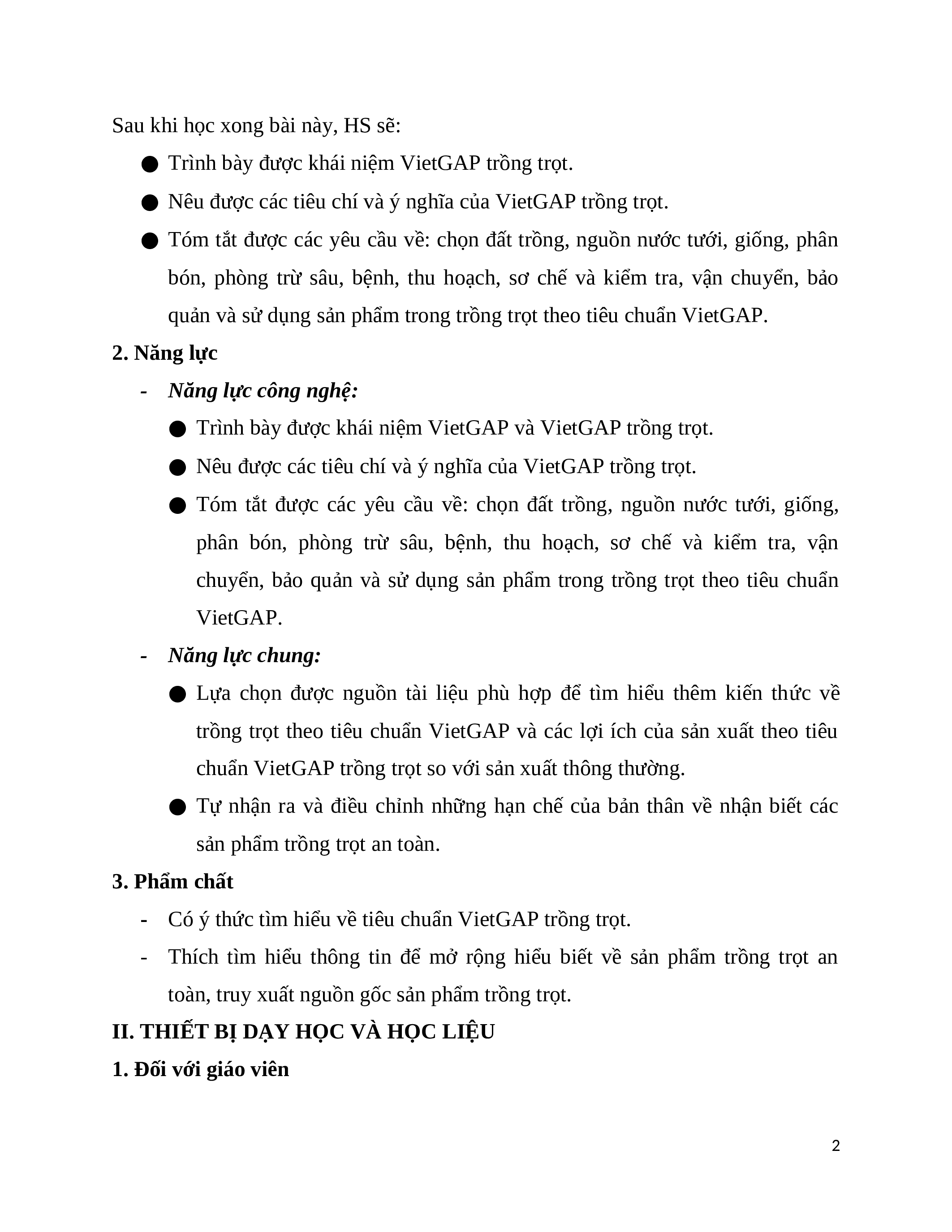- Thực hiện được một số công việc trong quy trình trồng trọt theo tiêu chuẩn VietGAP.