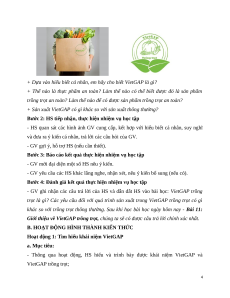 - GV ghi nhận các câu trả lời của HS và dẫn dắt HS vào bài học: VietGAP trồng