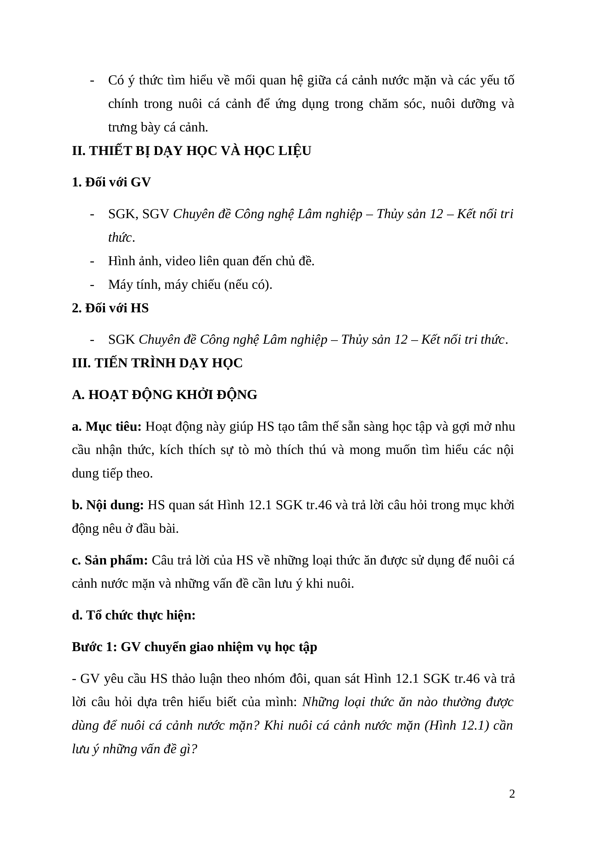 Giáo án chuyên đề Bài 12: Nuôi dưỡng và chăm sóc cá cảnh nước mặn Công nghệ Lâm nghiệp thủy sản 12 Kết nối tri thức