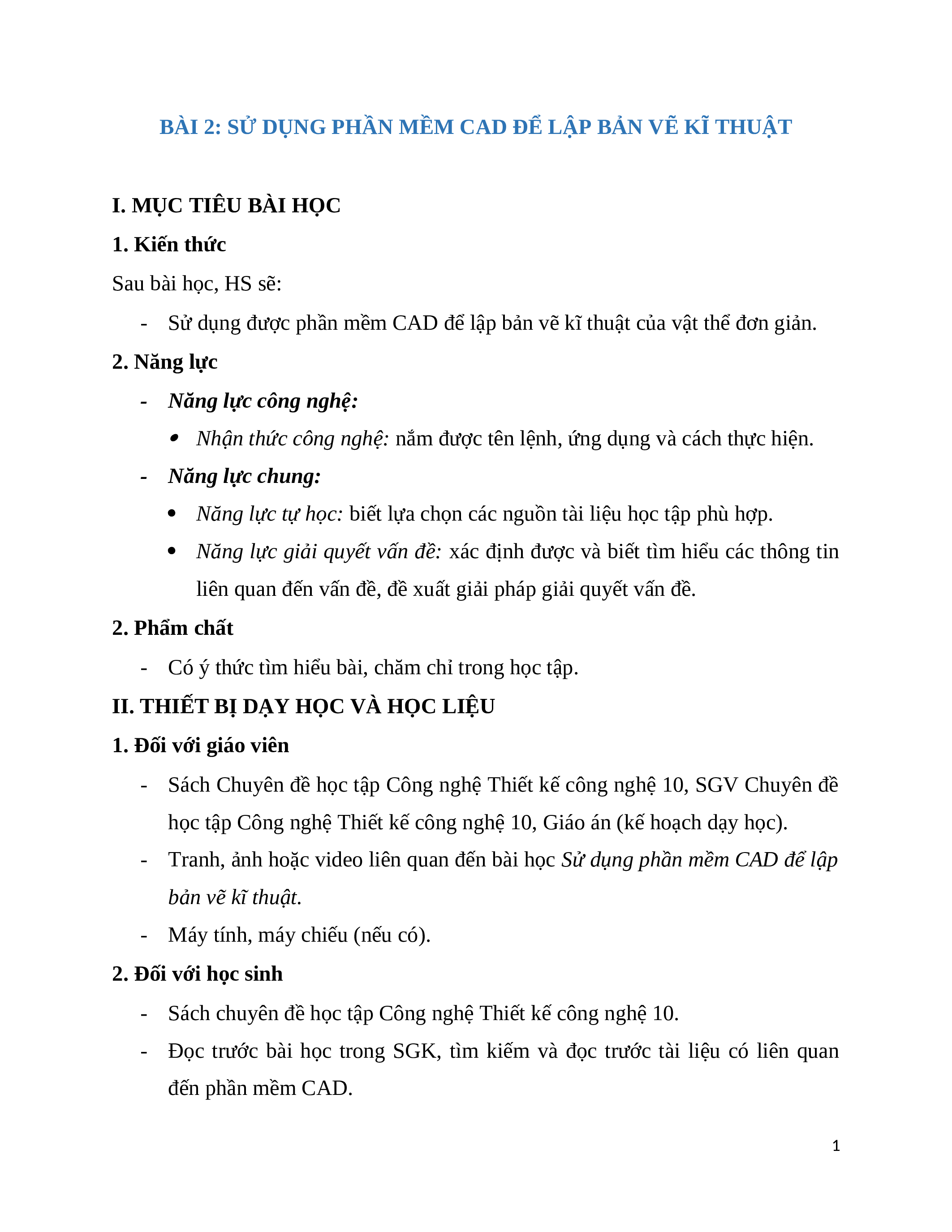 - Đọc trước bài học trong SGK, tìm kiếm và đọc trước tài liệu có liên quan đến phần mềm CAD. 1