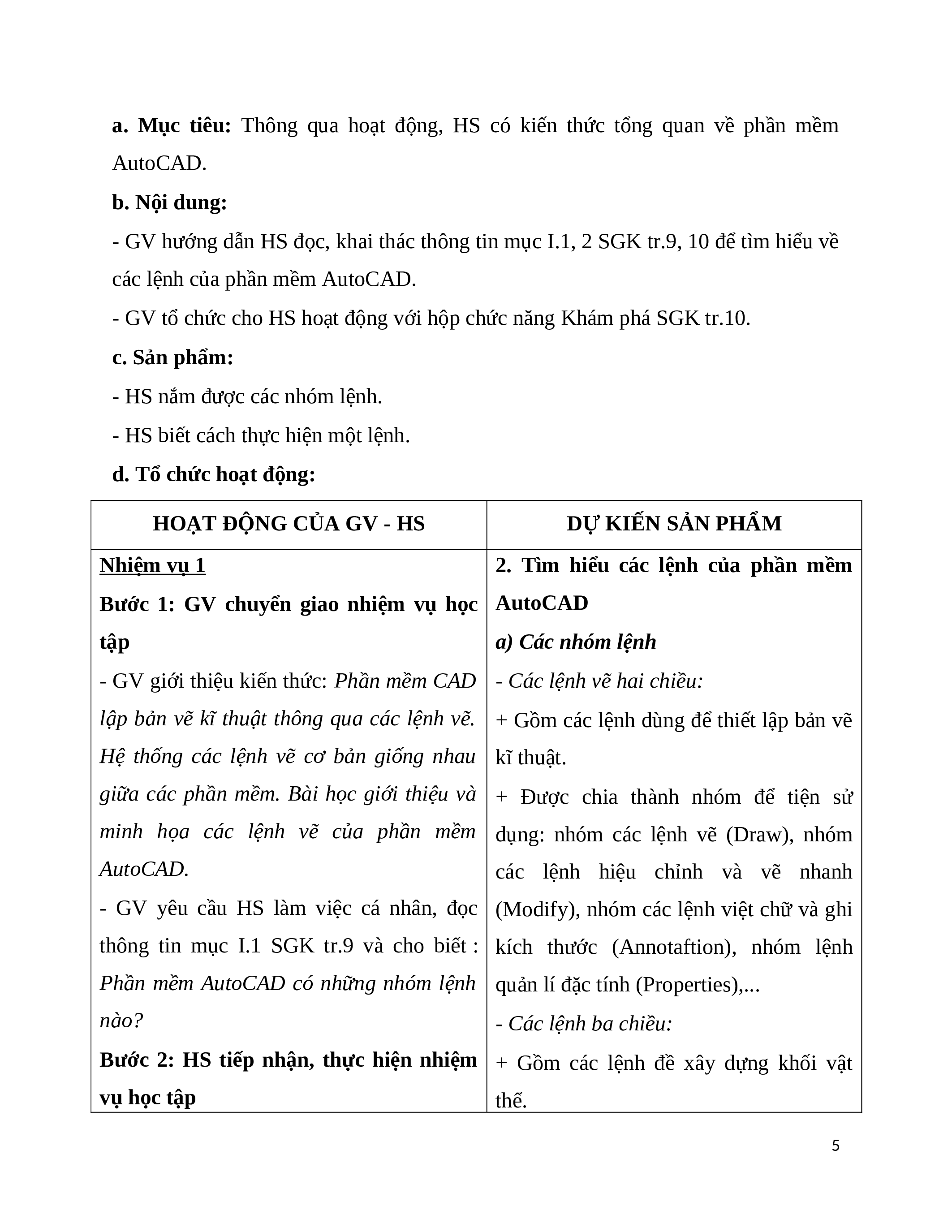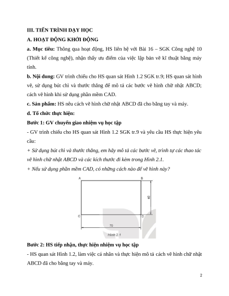 Giáo án chuyên đề Bài 2: Sử dụng phầm mềm CAD để lập bản vẽ KT Công nghệ thiết kế 10 Kết nối tri thức