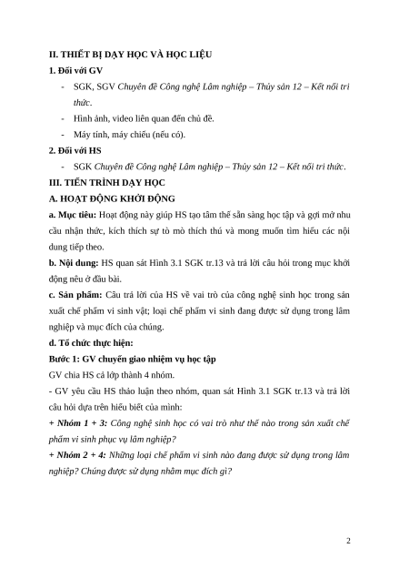 Giáo án chuyên đề Bài 3: Công nghệ SH trong sản xuất chế phẩm vi sinh phục vụ Lâm nghiệp 12 Kết nối tri thức