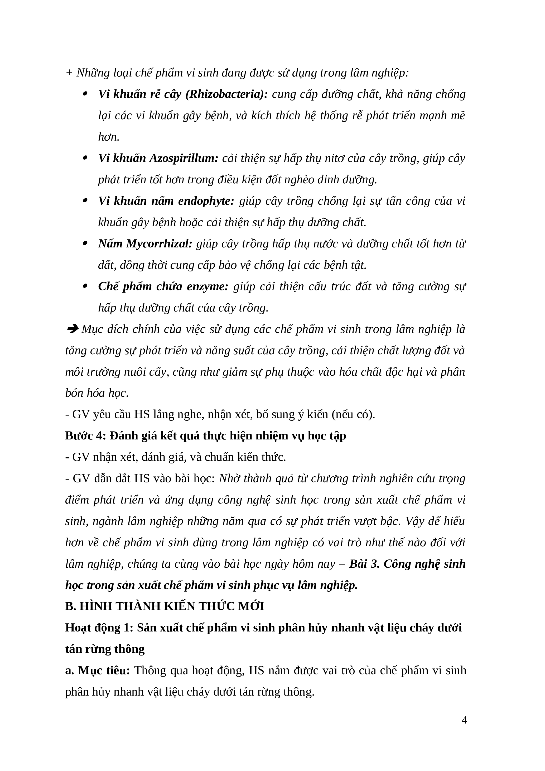 + Vai trò của công nghệ sinh học trong sản xuất chế phẩm vi sinh phục vụ lâm nghiệp là: