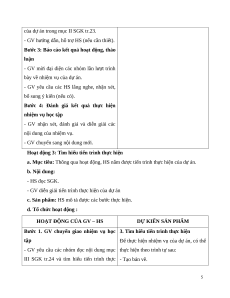Bước 1. GV chuyển giao nhiệm vụ học 2. Tìm hiểu nhiệm vụ của dự án tập