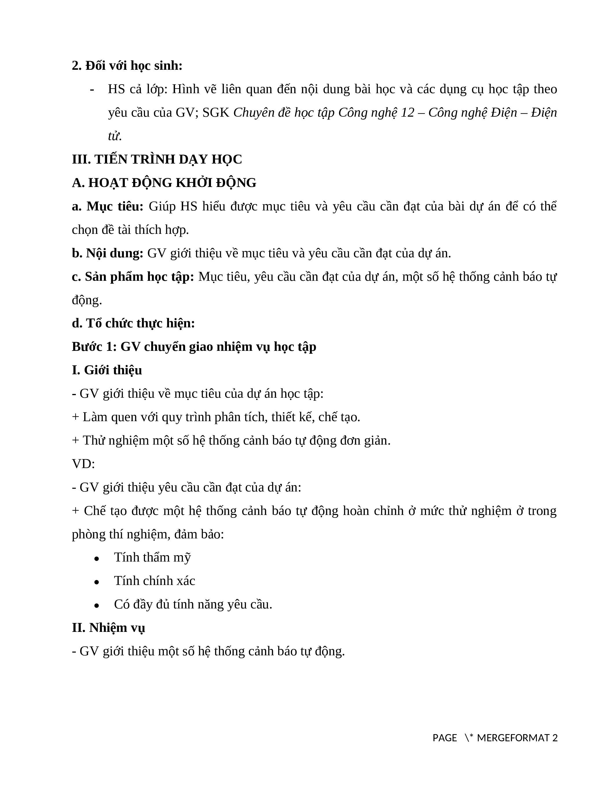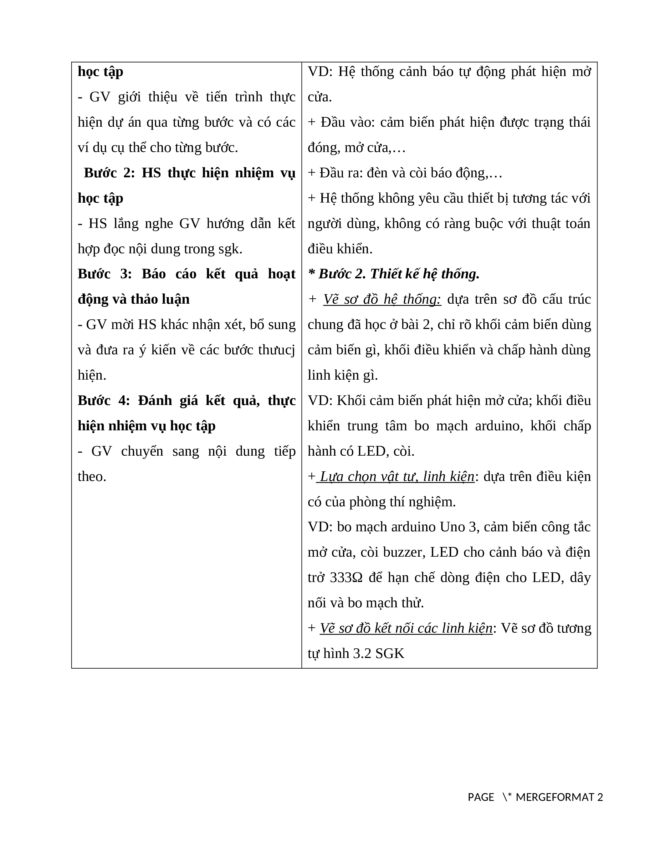 Bước 1: GV chuyển giao nhiệm vụ cảnh báo tự động để lên phương án thiết kế. PAGE \* MERGEFORMAT 2 học tập
