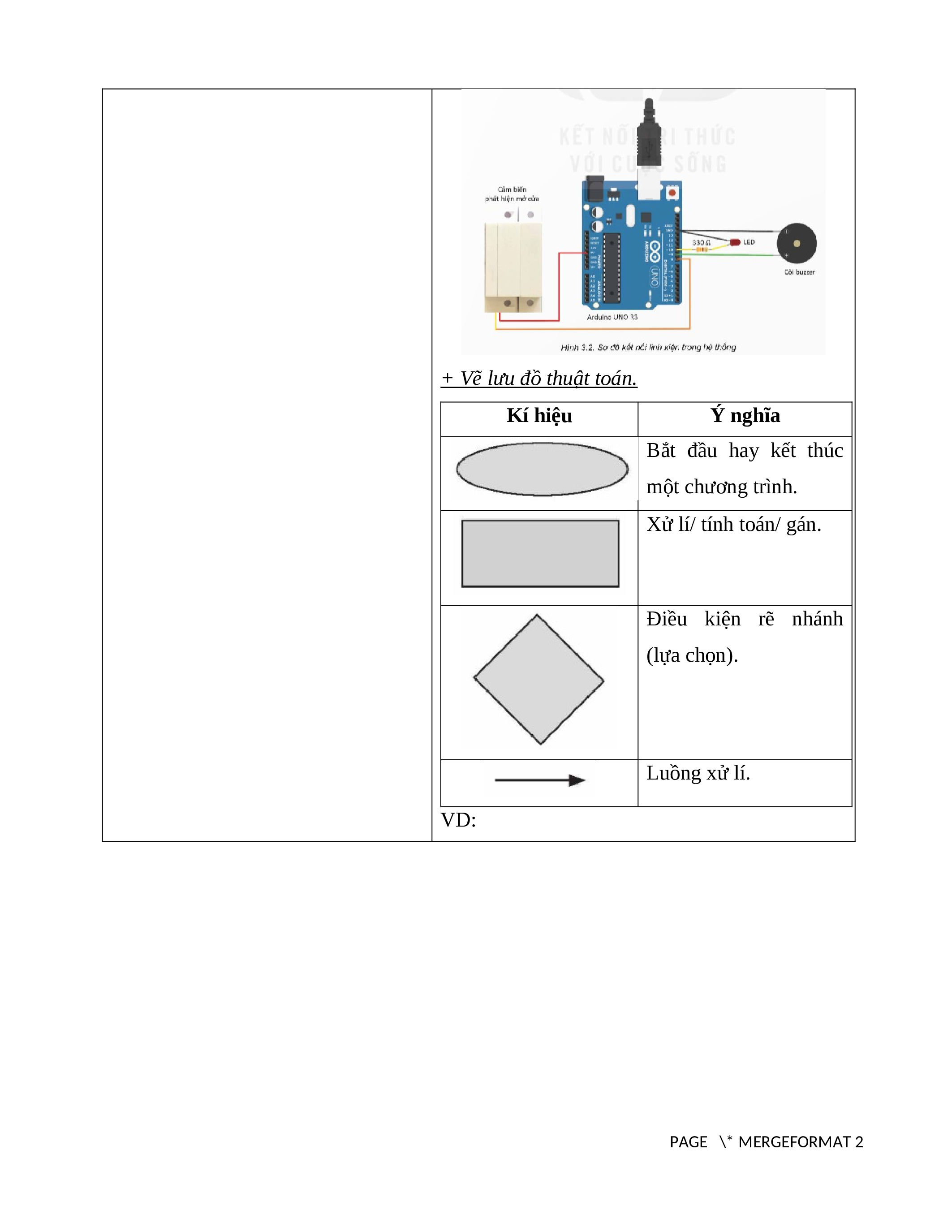 + Vẽ sơ đồ kết nối các linh kiện: Vẽ sơ đồ tương tự hình 3.2 SGK PAGE \* MERGEFORMAT 2