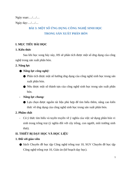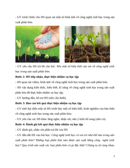 Giáo án chuyên đề Bài 3: Ứng dụng công nghệ sinh học trong sản xuất phân bón Công nghệ trồng trọt 10 Kết nối tri thức