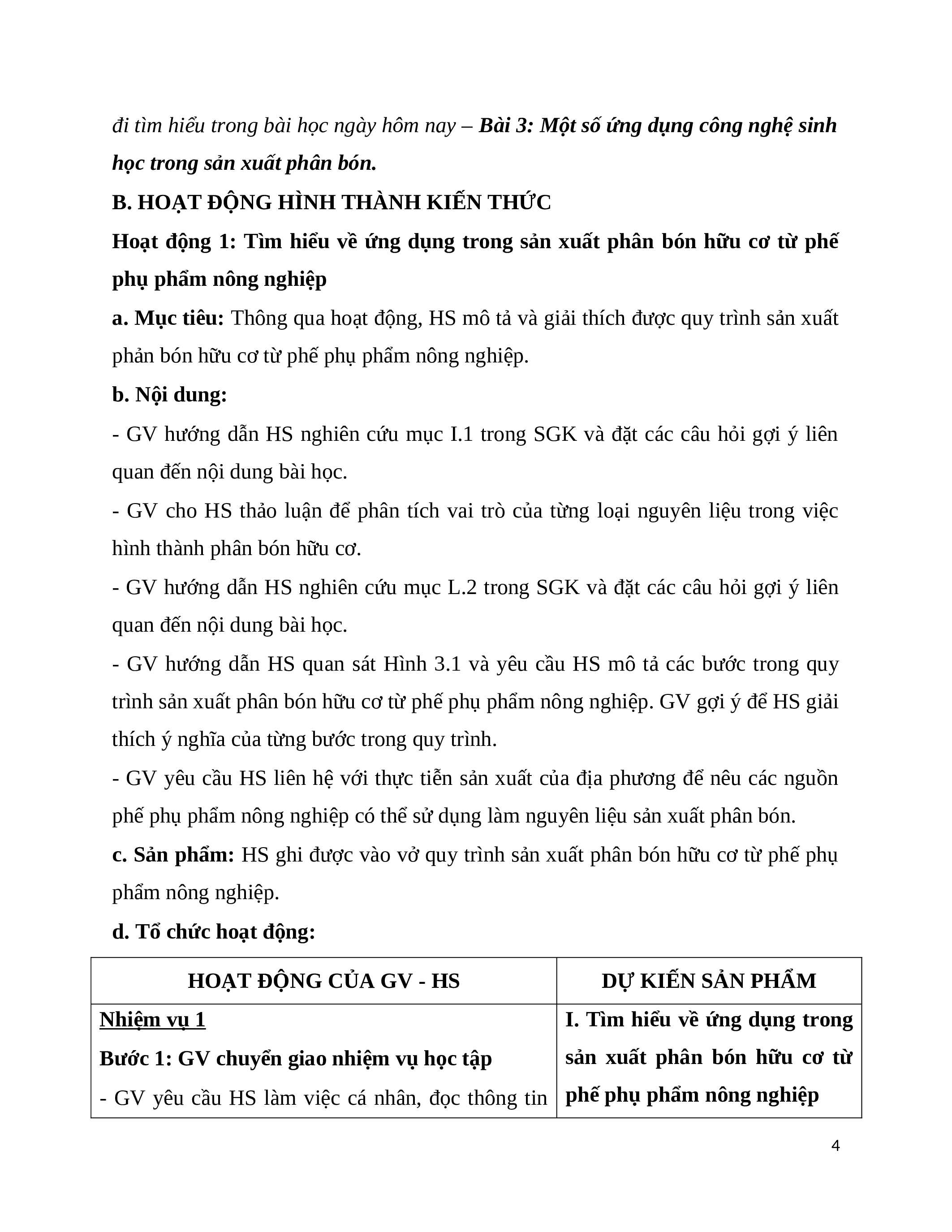 phản bón hữu cơ từ phế phụ phẩm nông nghiệp. b. Nội dung: